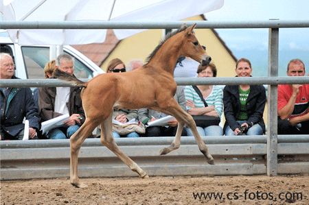 Aeneas Braunes Hengstfohlen geb. 13.06.2012 gest. Sommer 2013 Familie: O16A1 Abiza Z: Brigitte Krieglstein vollständiges Pedigree 54 Musterungspunkte Fotos (10): Klick aufs Bild fürs nächste Fotos vom Hessischen Fohlenchampionat in Kirchhain am 22. September 2012 |