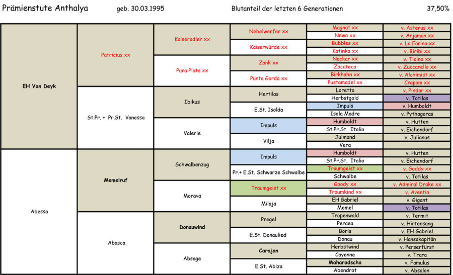 PrSt. Anthalya Dunkelfuchsstute geb. 30.03.1995 | gest. 09/2014 Maße: 1.71 / 20.0 Bewertung: 8-8-7/8-7-8/8 Familie: O16A1 Abiza Z: Antonia Sabel, Flieden vollständiges Pedigree Nachzucht-Übersicht Fotos (16): Klick aufs Bild fürs nächste |